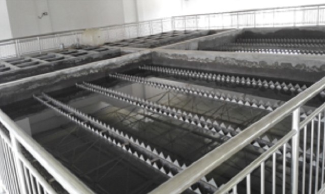 處理工藝:“網(wǎng)格絮凝+斜管沉淀+V型濾池+活性炭濾池+消毒”