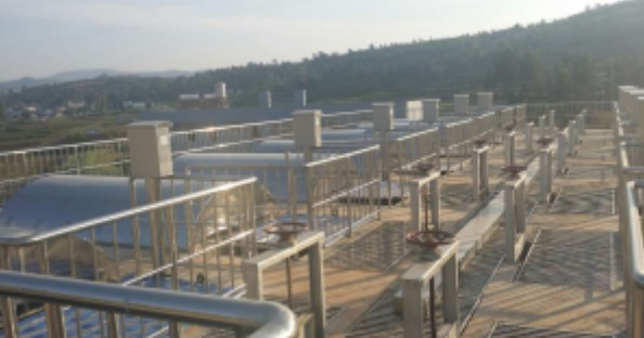處理工藝:“預(yù)處理+生物轉(zhuǎn)盤工藝+二沉池+虹吸濾池”