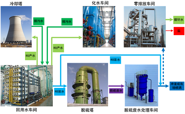 電廠水系統(tǒng)整體解決方案:在因地制宜,并統(tǒng)籌兼顧技術(shù)先進、經(jīng)濟合理、便于維護的原則下。將電廠的污水處理納入整個廠區(qū)的水處理系統(tǒng),結(jié)合各個單元的實際用水情況和排水情況整體解決,繪制全廠水量平衡圖,針對不同水質(zhì)特性,分而治之,制定不同的合理處理工藝,從而實現(xiàn)整個廠區(qū)的水處理零排放。